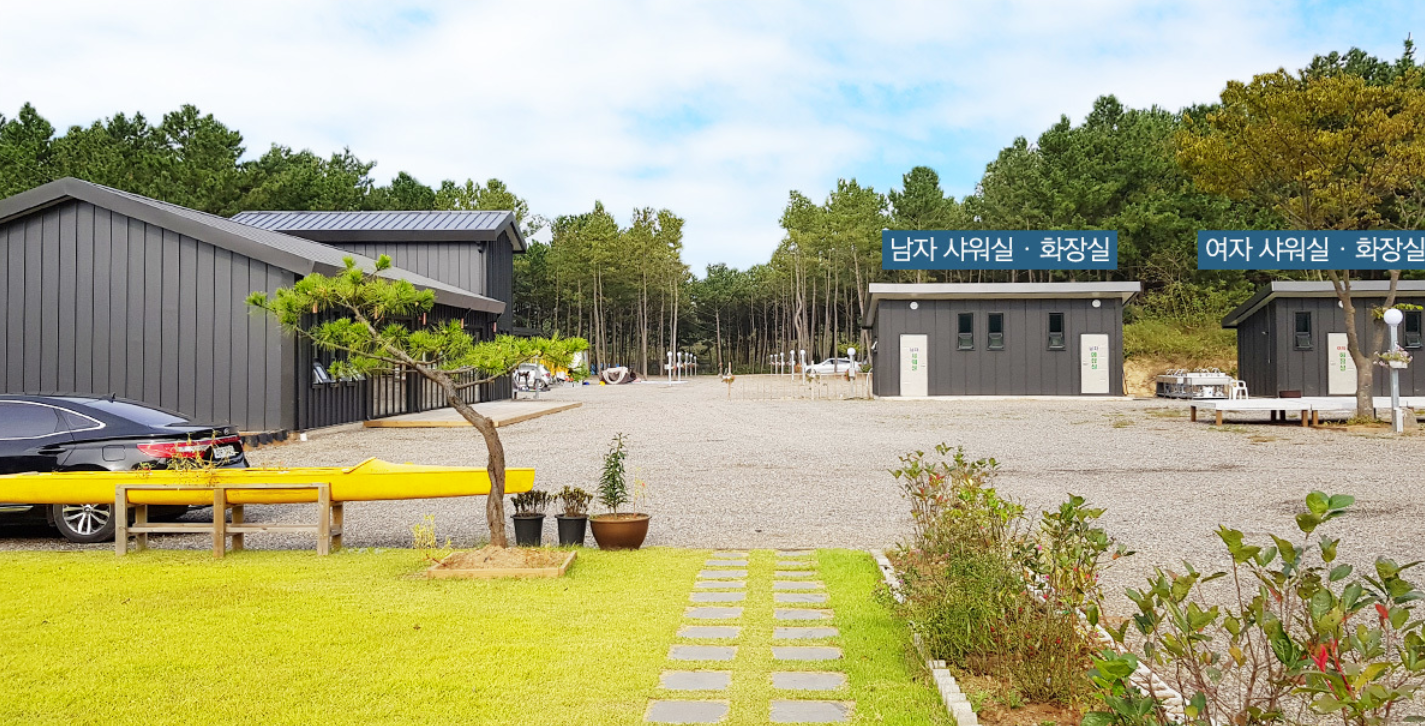 국내에서 보기드문 '사막'과도 같은 모래언덕으로 유명한 신두리 해수욕장에서 도보로 200m 떨어진 곳에 위치한 신축캠핑장!